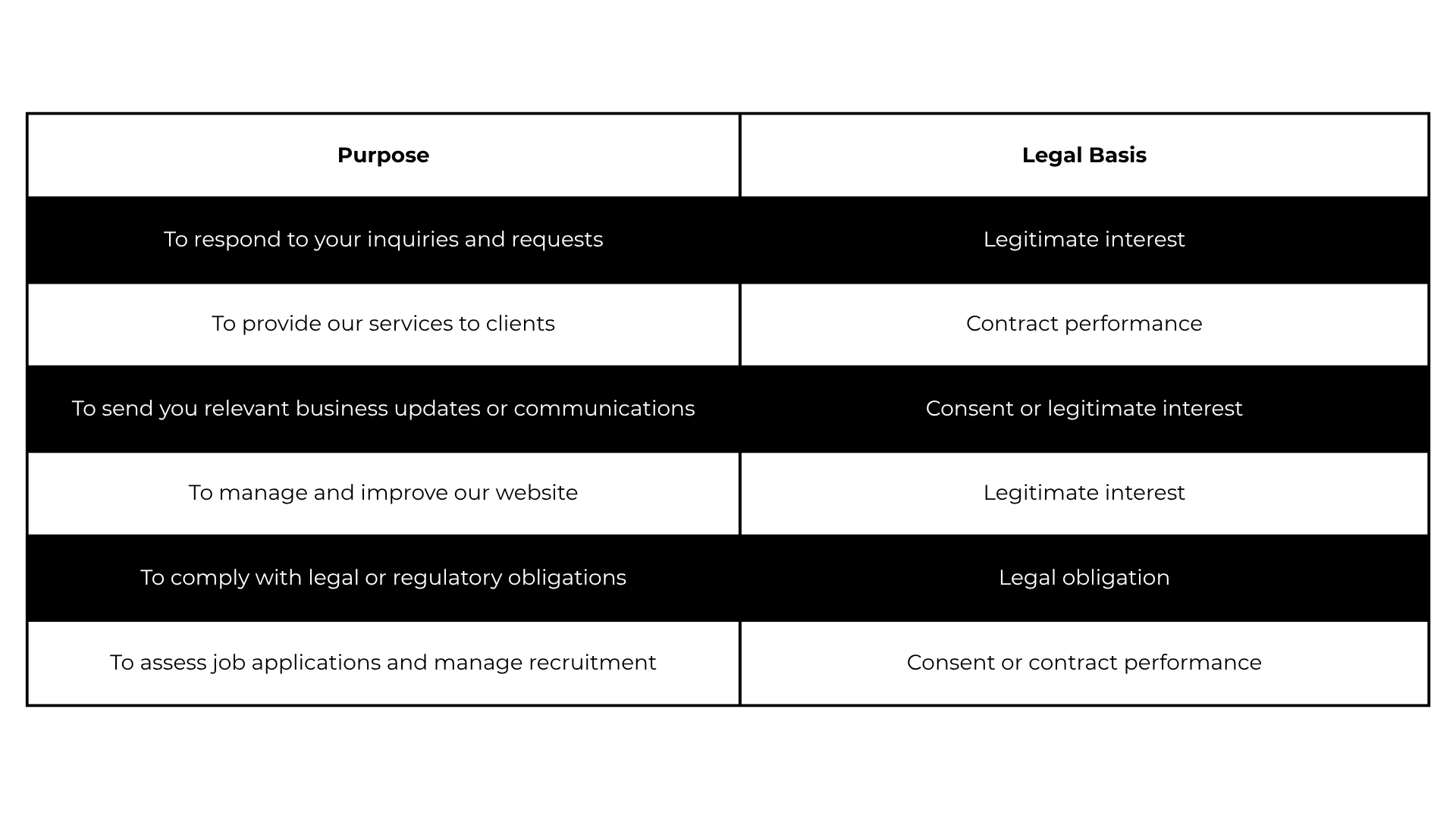 Client data: retained for the duration of the contract + 10 years (legal obligation)